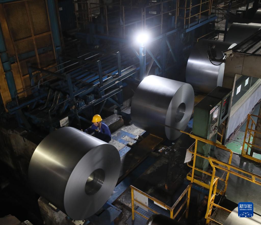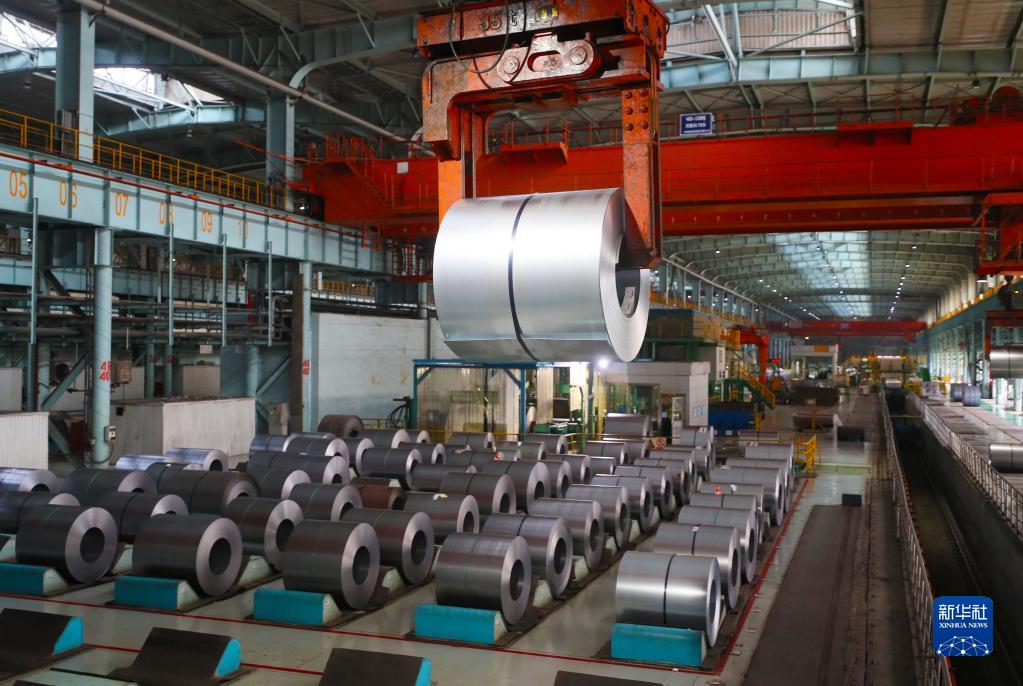 8月18日,在本鋼冷軋廠,吊車在吊裝鋼卷。新華社記者 楊青 攝