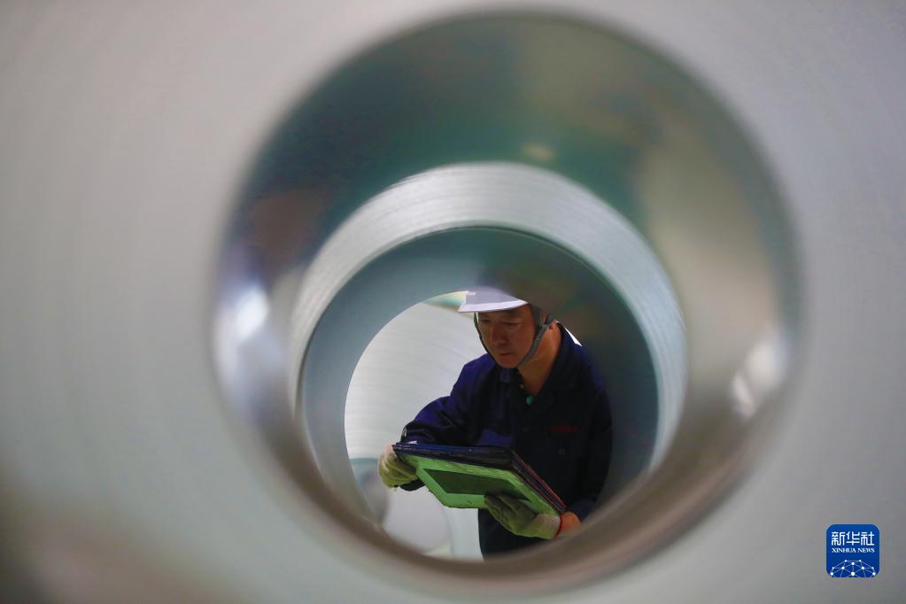 8月18日,在本鋼冷軋廠,工人對鋼卷停止東西的品質檢測。新華社記者 楊青 攝